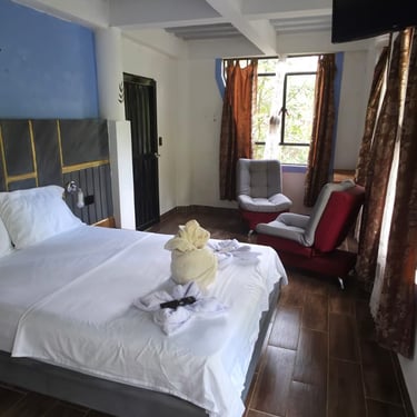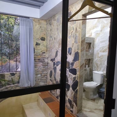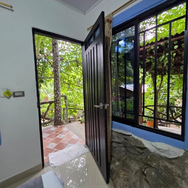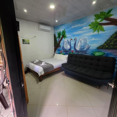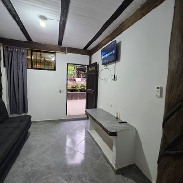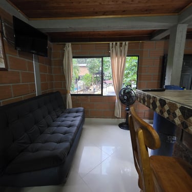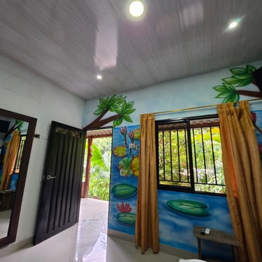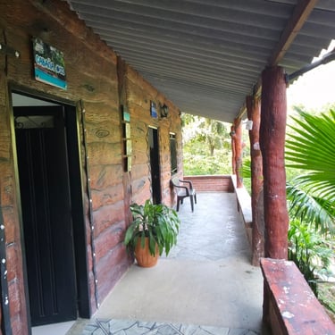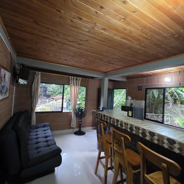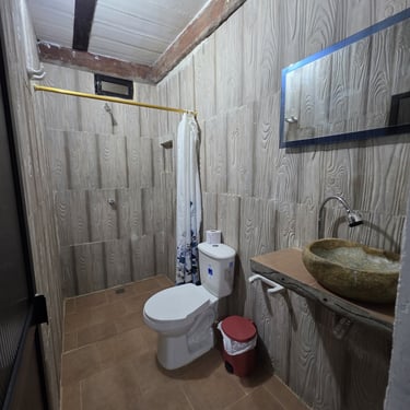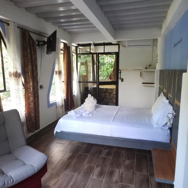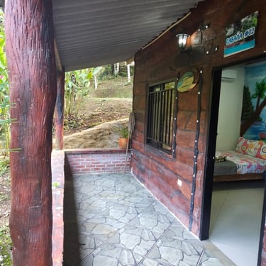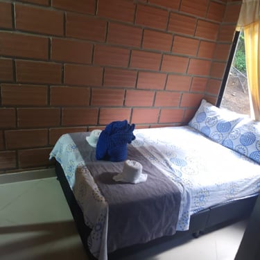 Acogedora y bien equipada, esta cabaña ofrece una cama de 1.40 mts y un sofá-cama de 1.20 mts, perfecta para parejas o quienes desean un poco de espacio extra. Cuenta con aire acondicionado, Wi-Fi y baño privado. Una opción cómoda y tranquila para reconectar con la naturaleza y el descanso 🌺.
