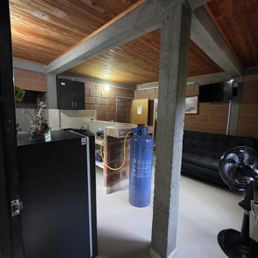 Esta cabaña es perfecta para vacaciones inolvidables en familia o con amigos. Tiene capacidad para hasta 6 personas, con una cama doble, dos camarotes, sofá-cama de 1.20 mts y cocina con set básico 🍽️. Además, incluye nevera, lavadero, aire acondicionado, TV y Wi-Fi. Un espacio amplio donde cada integrante puede disfrutar su propio momento.