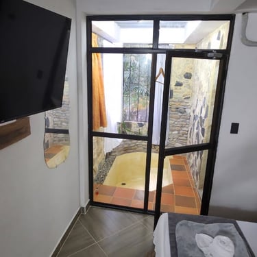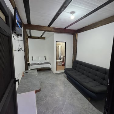 Esta encantadora cabaña te brinda comodidad y versatilidad con una cama doble de 1.40 mts y un sofá-cama de 1.20 mts 🛋️, ideal tanto para parejas como para quienes viajan con niños. Disfruta de un relajante jacuzzi privado, aire acondicionado ❄️, TV y baño privado. Un espacio que combina descanso, calidez y conexión familiar. Capacidad máxima de 4 personas.