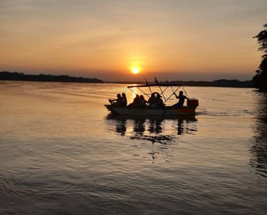 Vive un atardecer único mientras el río se tiñe de colores y calma.